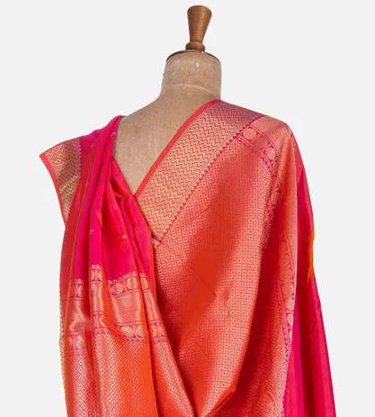 This Pinkish Orange Soft Silk Saree has woven in buttas all over the body and paired with a zari border. This ethereal drape is made to suit any occasion.