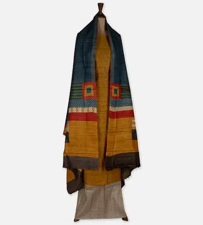This Yellow Tussar Salwar set comes with prints all over the kurta and printed pants and it's paired with a printed dupatta.